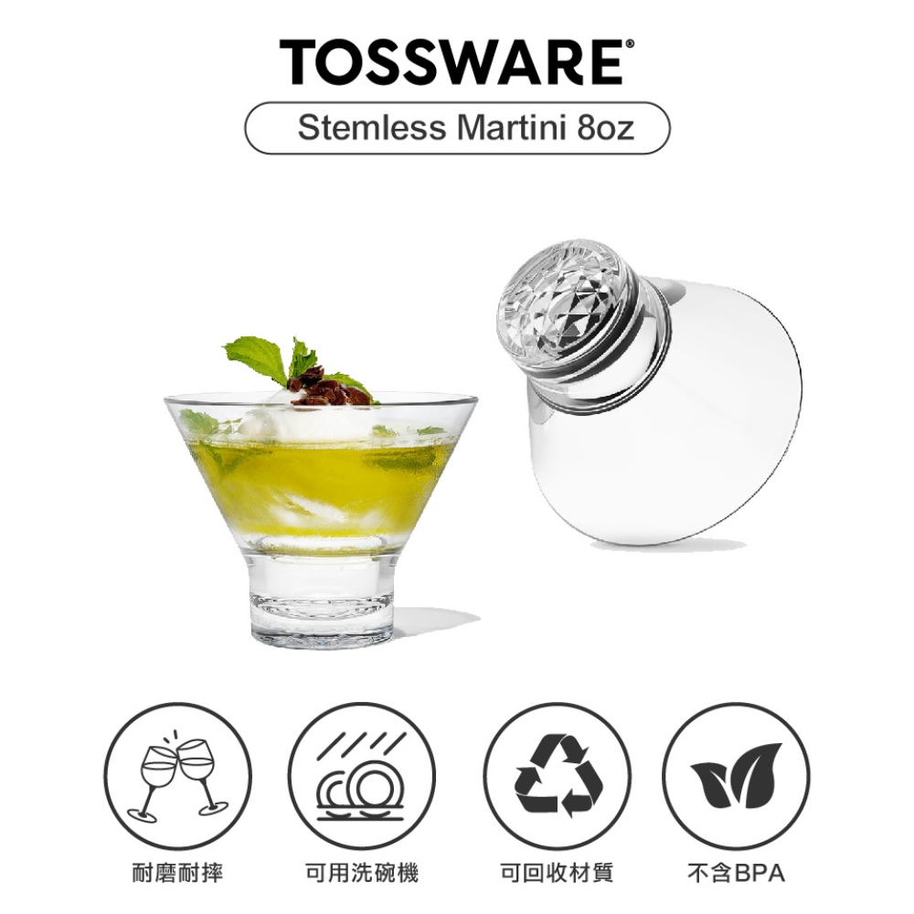 TOSSWARE 保特環保馬丁尼杯 8oz 24入 TOSSWARE Reserve 8oz Stemless Martini Glasses